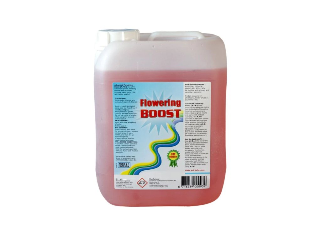 Advanced Flowering Boost (AFB) je květový booster bez PGR pro poslední 3 týdny květu. pH stabilní PK karbonáty fungují v půdě, kokosu i hydro. Dávkování: 2 → 3 → 4 ml/l...