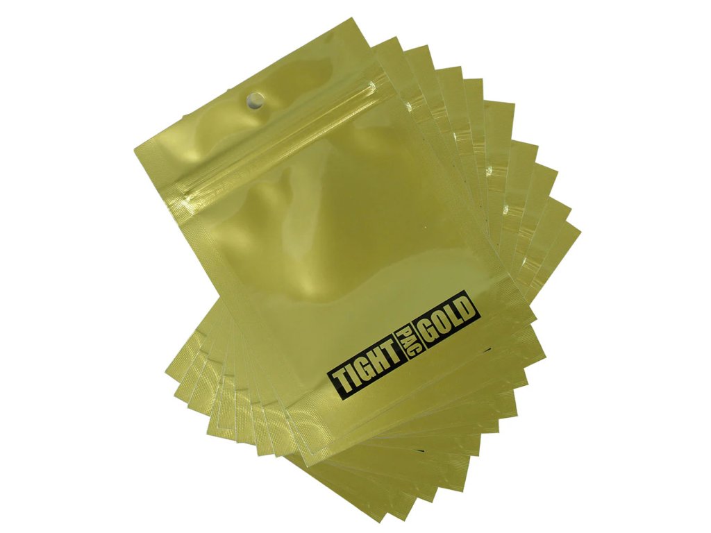 TP Gold Bags představují prémiově zpracované mylarové sáčky ve třpytivém zlatém provedení a velikosti 10x9 cm. Každý sáček je vyroben z pevného, odolného materiálu s opakovaně použitelným zipovým uzavíráním, které chrání vaše produkty před vlhkostí, vzduchem i nechtěnými pachy. Díky diskrétnímu designu a vysoké kvalitě se ideálně hodí pro: