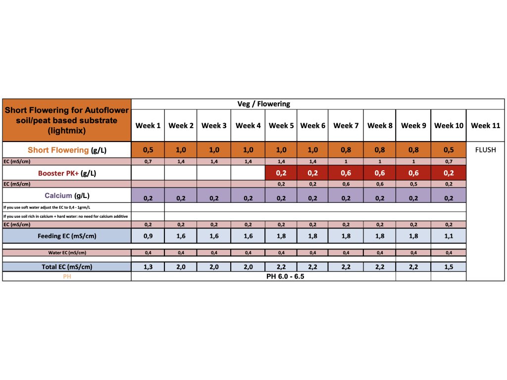 Minerální řada: Grow, Hybrids, Short/Long Flowering, Booster PK+, Calcium.