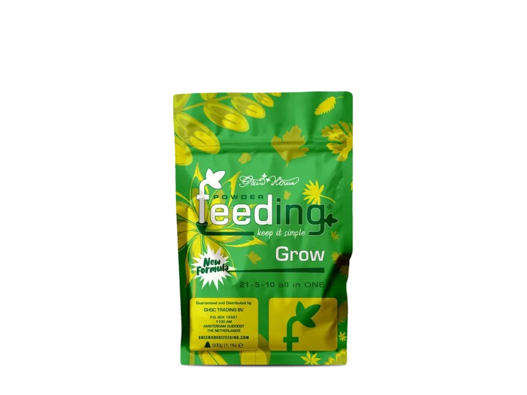 Green House Feeding Grow je koncentrované minerální hnojivo ve formě plně ve vodě rozpustného prášku, vyvinuté přímo pro vegetativní růst všech typů rostlin. Díky vyššímu obsahu dusíku a vyváženému poměru živin podporuje rychlý start, sytě zelené listy a pevnou, dobře větvenou strukturu v půdě, kokosu i hydroponii.