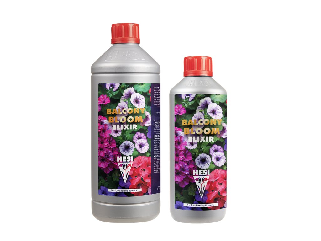 Hesi Balcony Bloom Elixir 1 l je univerzální květové hnojivo pro balkonové, terasové i zahradní rostliny, vyvinuté přímo pro pěstování v truhlících a menších nádobách. Výživná receptura s poměrem NPK 3-3-4 doplněná o magnezium, vápník a chelátované mikroprvky udržuje rostliny ve špičkové kondici během celé sezóny.