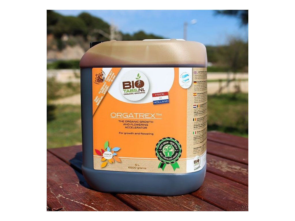 Orgatrex od Biotabs je organická výživa na růst i květ s vysokým podílem stopových prvků, živin a hlavně cukrů. Hodí se pro pěstování v půdě a kokosu a to jak venku, tak uvnitř.