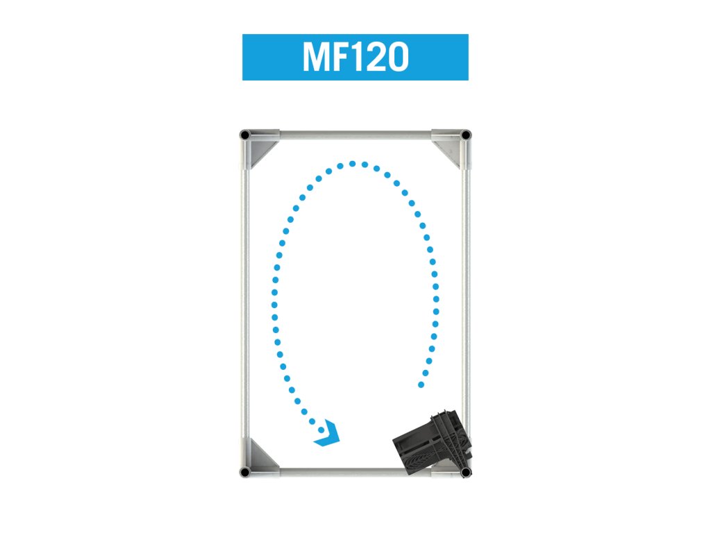 - Cílená cirkulace – rozhýbe vzduch v celé ploše bez přefuku přímo do jedné rostliny.