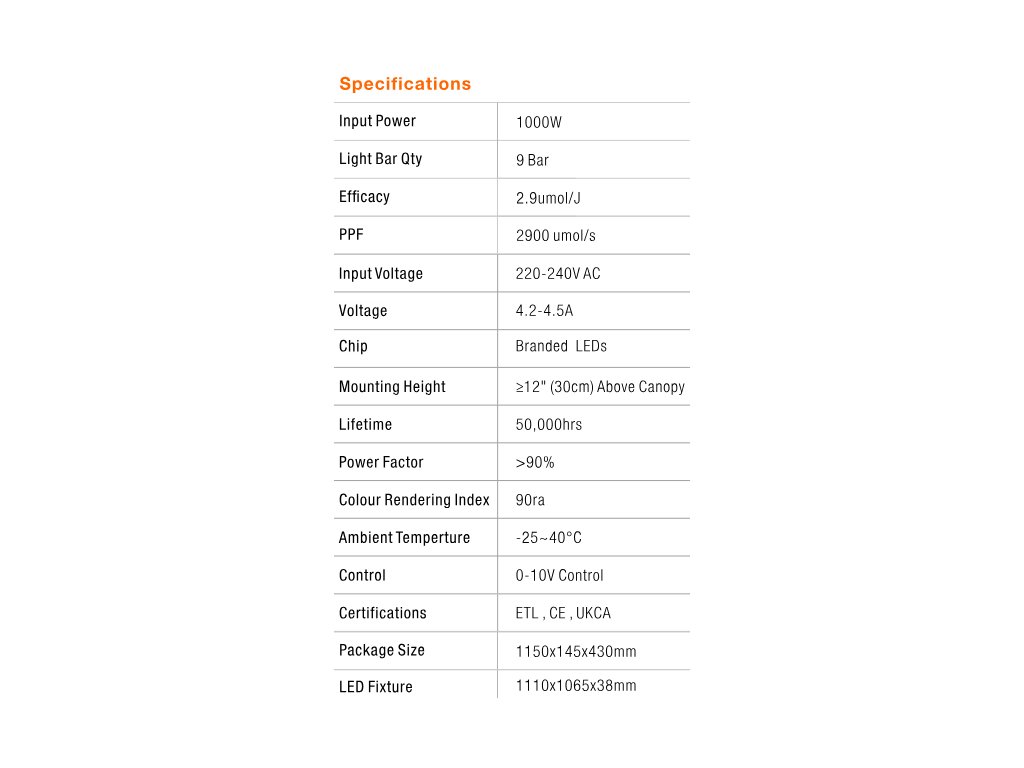 - 2,9 µmol/J účinnost | PPF 2900 µmol/s