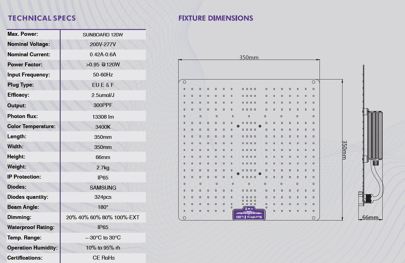 SunPro SUNBOARD 2.0 120 W – 2,5 µmol/J