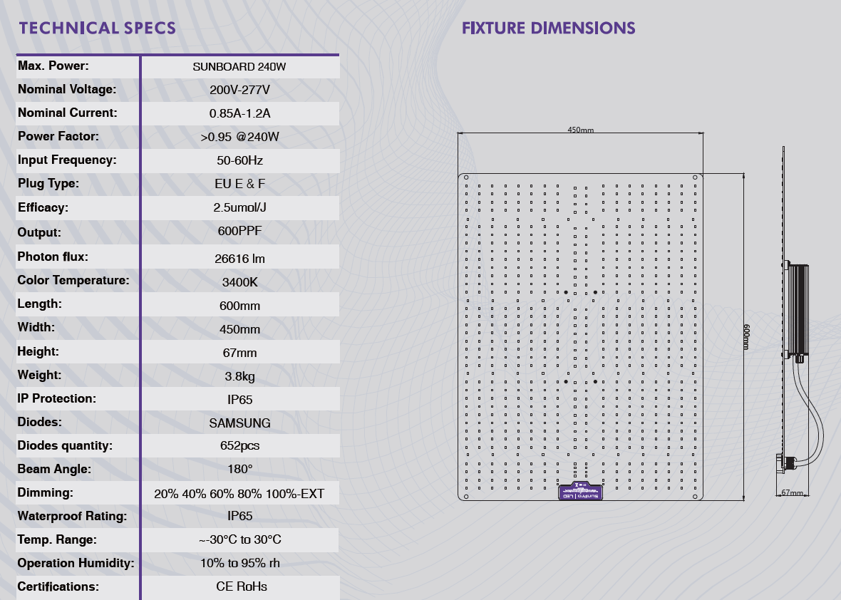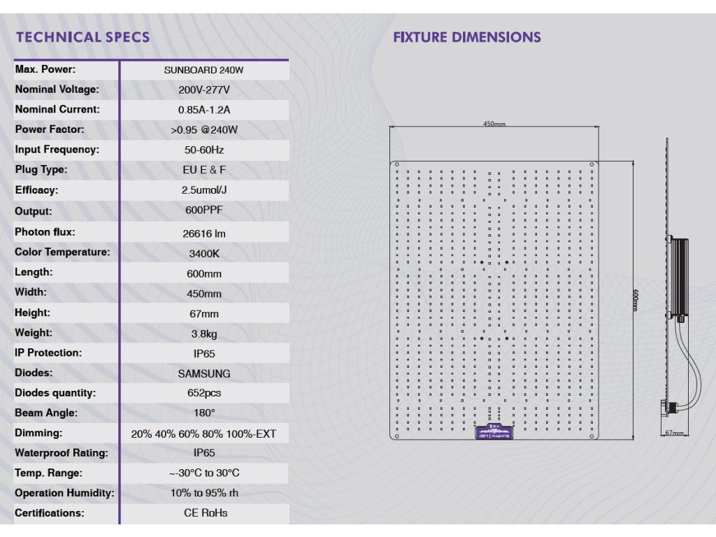 SunPro SUNBOARD 2.0 240W – 2,5 umol/J