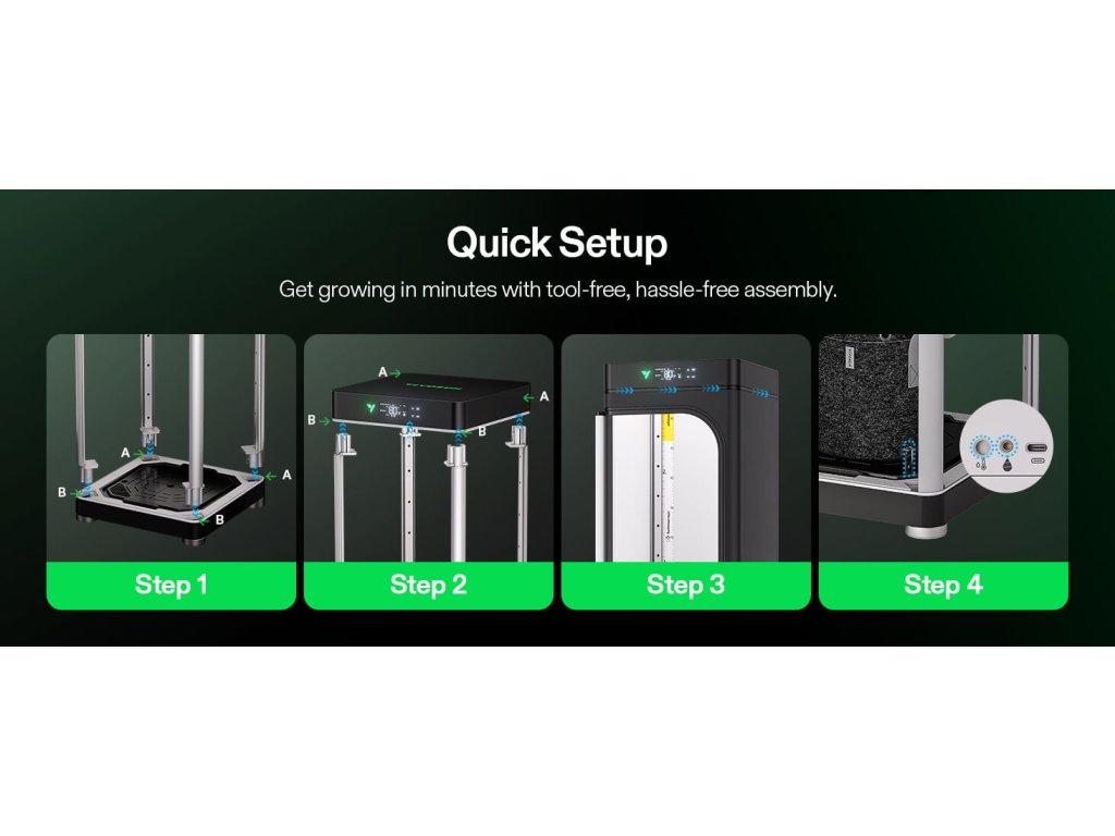 - 📏 Rozměr půdorysu: vybírej podle prostoru a počtu rostlin (mysli i na místo pro filtr/ventilátor).